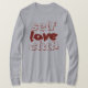 I love this shirt. I had written to the artist asking her if this picture was available on a shirt, and she wrote me back telling me where I could find the shirt. These shirts can be custom made to have a different saying. I loved this saying and went with it. The artist wrote me back later to tell me that she had seen my order go through. How's that for service? Pretty special. It's just as displayed. Perfect!