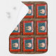 Cute self-portrait by the Naughty Nutty Squirrel. His funny face on green and red and faux-wood background. Oil painting-like. Funny squirrel personalized baby blanket. Matching Baby Bib.