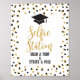 SELFIE STATION - GRAB A PROP & STRIKE A POSE graduation party sign features a black and gold glitter confetti design. Perfect for your graduation celebration!