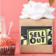 "SELL OUT": This phrase serves as the central message, presented in a clear and direct manner. Its interpretation can range from a literal "sold out" message to a more metaphorical statement about commercialism or authenticity.