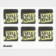 This artwork features a rectangular print set against a deep black background. At its center, a bright yellow rectangle boldly displays the text "SELL OUT" in large, black letters. The yellow rectangle is tilted slightly, adding a dynamic element and creating visual interest. The edges of the image are rough or uneven, suggesting a hand-cut or distressed aesthetic that enhances its raw appeal.