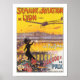 Vintage French travel poster promoting "une Semaine d'Aviation" ( an Aviation Week ) in Lyon, France showing a curvaceous Edwardian female figure waving to the early aeroplanes overhead.