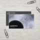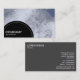 A business card template with a black semi-circular panel decorated with a white dotted line in the bottom left for your Company name and business type. The semi-circular panel is placed over a photo or artwork background (which can also be changed). Name and other contact details on the reverse.