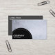 A business card template with a black semi-circular panel decorated with a white dotted line in the bottom left for your Company name and business type. The semi-circular panel is placed over a photo or artwork background (which can also be changed). Name and other contact details on the reverse.
