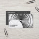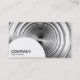 A business card template with a white semi-circular panel in the bottom left for your Company name and business type. The semi-circular panel is placed over a photo or artwork background (which can also be changed). Name and other contact details on the reverse.