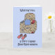 The card was prompt and was delivered as promised. I loved that I could personalize the card with their names. I seriously did not pay attention to the size of the card. I love that it makes a statement. Beautiful! For privacy, I blocked out their names.