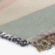 A quality printed throw has its advantages. This is a much finer weave throw than its loopier cousins, and though lighter, it is worth the investment for custom room accessorizing. The back is much prettier than the typical brown, and the fringe on the long sides very vivid, the selvage nicely done. Before photographing, I washed the throw in cold water, delicate, with a thicker woven throw the same size. On tumble dry low, this throw was dry in half the time as the other. This is a very practical quality if you use throws for furniture covers or to wrap up in frequently. The sleekness of the fabric makes it a great layer for accenting or protecting without the feeling of sitting on too much stuff. Perfect for napping or when you feel a light chill coming on. The color printing is beautiful and on this fabric, matched the design and color of my Photoshop image. This is an advantage for blending room fabrics and colors. The fringe on the short sides prints the colors from the design image and therefore varies from the side fringe. I streaked a white fractal line through the plaid pattern to give the illusion of weaving. This printed as crisp as an illusory thread, and put some white in the short side fringe, showing another advantage of print vs loomed- for artistic purposes, line lines, detail, and color integrity can be planned and preserved. My loomed throws have color limitations and more of a needlepoint texture. Print throws reproduce an exact image. The throw felt a little stiff straight out of the package, but this went away in the first delicate wash. Of course I searched the wash water for ink or bleeding and there was none.
