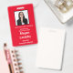 Seminar Attendee badge in Red and White. All elements can be changed, including: photo, seminar name, seminar location & date, attendee's name, attendee's title and the name of the company.Also available in horizontal orientation in this store. Slot at top for lanyard.