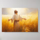 Radiant light bathes the scene in a golden glow, casting Jesus in divine brilliance as He looks heavenward. The ripened wheat reflects the glory of the mission, and the entire canvas is awash with celestial light. Jesus, adorned in white robes, stands as the beacon of hope, calling on His Father to send forth laborers. The harmonious interplay of light and color transforms the artwork into an ethereal vision, a visual prayer capturing the moment of divine entreaty.