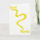 This card features a white background with a single thick yellow line that wiggles across the center like one long noodle. The line looks hand-drawn, with slightly uneven edges that make it feel personal and friendly. In the upper left, the word “Send” appears in a casual script style, also in yellow. In the lower right, the word “Noods” matches the same script and color, so the two words feel connected. The yellow “noodle” visually links the text, turning the message into a sweet, funny pun that works for romance or close friendship. The simple setup keeps your focus on the message and the warm, sunny yellow tone ❤️. It’s a lighthearted way to say you’re thinking of someone, with a little wink and a lot of affection 💌🍫.