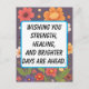 Sunshine yellow background with glowing sun rays and a hopeful message. Cheerful yet respectful, great for someone recovering from illness or surgery.