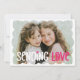 Send your love to friends and family with this modern photo Valentines Day card featuring the text 'Sending Love' in bold white and pink font. Add your favorite photo and texts. The font style, size and color can be changed if preferred by clicking on the 'customize further' link after personalizing.