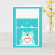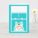 Send some love to someone special with this cute greeting card. It features a mint green cat in a window holding up a sign with a heart drawn on it. The illustration is set a against a teal blue background. The card is blank on the front and has a message on the inside which can be personalized with your own special greeting. It's perfect for letting someone know you are thinking of them and makes a great card for cat lovers of all ages. With its bright colors and cute illustration it's sure to cheer them up!