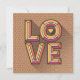 If you're looking for a fun way stay in touch with friends and family, this colorful note card may be exactly what you're looking. This design says "LOVE" in big, bold dimensional letters which sit on a background of interlocking flowers reminiscent of the 1960s flower power movement. The backside of this card can be personalized with your name or with someone else's name and given as a gift. This design is available in 3 additional color variations, please visit our store to see additional details. Optional white envelopes are also available.