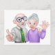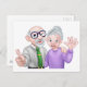 Cartoon senior elderly grandparents couple wife waving and husband doing thumbs up