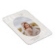 Rounded photo frame, senior class graduation announcement magnet. Soft ivory beige background and white graduation year numbers with template lines for class of year, graduate's name and school.