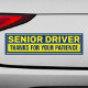 A very helpful Senior Driver car magnet design with a thankful and appreciated message for others' patience.