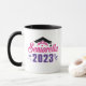 I was thrilled this came out so well. It is a very attractive mug with the colored handle and interior. Being able to personalize it was easy! It was designed for an end of the year thank you gift to the special recipient. perfect. Text lines up perfectly parallel to the top edge of the mug.