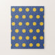 Synura are a single-celled, microscopic algae, often golden to golden-brown in color, that tend to form spherical colonies in freshwater ponds, lakes, and slow moving rivers or streams. This design showcases colonies of these pretty, and sometimes smelly, little plankton as a polka dot pattern on a muted blue background.