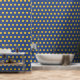 Synura are a single-celled, microscopic algae, often golden to golden-brown in color, that tend to form spherical colonies in freshwater ponds, lakes, and slow moving rivers or streams. This design showcases colonies of these pretty, and sometimes smelly, little plankton as a polka dot pattern on a muted blue background.