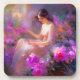 An AI-generated painting of a beautiful woman surrounded by pink and purple flowers