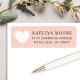 Simply stylish wedding return address labels feature custom blush pink and soft black text that can be personalized, accented with a white heart shape.