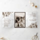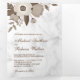Sepia Brown Floral White Marble Photo Wedding Tri-Fold Invitation