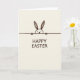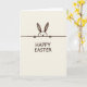 This card features a simple bunny 🐰 drawn in deep sepia-brown, with a rounded head and long, narrow ears reaching upward as if it’s shyly leaning in to say hello. The little dotted eyes and tiny nose give it a tender, curious look, like it’s sharing a quiet moment with someone close. A solid horizontal line runs across the design, and the bunny peeks over it from the top portion of the front. Beneath that line, the words “HAPPY EASTER” appear centered in thick, slightly uneven, hand-drawn letters that match the illustration’s gentle line style. The text is the same dark brown as the bunny, standing out clearly against a creamy off-white background. The background has a soft paper-like texture, adding warmth and a cozy, friendly tone 🌷. The composition stays minimal with lots of open space, keeping attention on the bunny’s ears, the dividing line, and the centered message in dark brown.