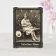 This design shows a sepia-toned portrait with a gentle, nostalgic glow, centered on a softly smiling woman seated on a curved park bench. She wears a simple light dress, and her relaxed posture leans toward the infant in her arms as if sharing a quiet, affectionate moment ❤️. The baby, dressed in a light romper, rests calmly against her, gazing slightly past the viewer while the woman’s eyes seem fixed tenderly on the child. Behind them, garden leaves and pale blossoms fill the background, with the figures kept sharper than the softly blurred foliage to draw attention to their closeness 🌼. A wide-brimmed hat sits on the bench to her left, suggesting a pause during an easy afternoon outdoors. A dark decorative border frames the scene with curling scrollwork and small botanical details. There is no visible text on the front, only the centered portrait surrounded by the ornate edging. The border appears as deep brown-black lines with tiny leaf accents tucked into the corners.