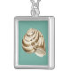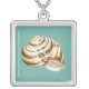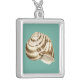 Sepia Striped Shell on Teal Silver Plated Necklace