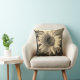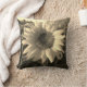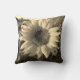 Classic summer sunflower pillow, featured in neutral sepia tone adds a clever touch to home or patio decor.