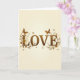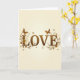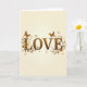 Designed with deep sepia-brown letters spelling “LOVE” at the center, this card sets a tender, close-knit mood, as if the word itself is gently held in place. The capital letters have a slight 3D look, like polished wood or warm bronze, standing out against a soft, creamy beige background. Curving vines and small leaves in ochre and darker brown weave around the letters, leaning in like a quiet embrace between close friends. Stylized flowers tuck into the greenery, adding soft detail without crowding the main word. Two monarch-like butterflies rest near the top, one above the “L” and one above the “E,” their amber wings suggesting a calm, affectionate pause ☘️. A few smaller butterflies drift around the edges, as if floating through late-afternoon light 💚. The word “LOVE” is centered and large in sepia brown, with the botanical accents curling outward and the butterflies hovering near the upper corners.