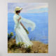 Fine art painting by Charles Curran, 1913, September Afternoon, a lady in a flowing white dress enjoying a sunny autumn day, art poster.