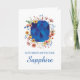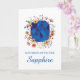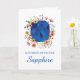 Embrace the elegance of September with this captivating greeting card featuring a dazzling sapphire birthstone gemstone nestled amidst delicate wildflowers. The rich, blue hues of the sapphire, mirroring the deep sky, represent the recipient's strength, loyalty, and wisdom. These qualities, like the gemstone itself, endure and shine brightly, inspiring those around them. The surrounding wildflowers, in soft golden colors, dusty rose, purples and blues, add a touch of serenity and grace, reflecting the individual's gentle spirit and unwavering compassion.
