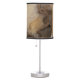 The lamp looks exactly like the picture, bright and colorful. The lamp shade is plastic not what I expected, however I love it! The printing is clear and the name can easily be read.