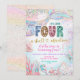 sequin glitter Four Shellebarate Girl birthday inv Invitation
