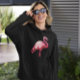 Sequin Printed Tropical Flamingo Pink Bird Black Hoodie