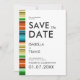 A set of beautifully printed serape pattern wedding save the date invites in an open and minimal style reminiscent of the colors of summer.