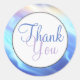 Abstract waves in shades of turquoise, periwinkle blue, lavender, and rose quartz. "Thank You" or your choice of text is displayed on a round white matting in blue and lavender script. Just add your initial to the text field template provided or click on "Customize" to adjust the font size, type, color, placement, or make any changes you like.