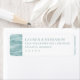 These return address labels feature a minimalist and modern design with an abstract wave pattern on the left, rendered in soft shades of blue and teal. The right side is clean and white, providing a balanced contrast that enhances readability. Elegant serif typography centers the customizable text, creating a sophisticated and serene look perfect for formal occasions. The overall aesthetic conveys tranquility and refinement, making these labels ideal for weddings or other elegant events.