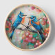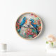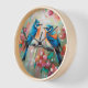 Serene Avian Sanctuary, A vibrant painting of two birds perched on a branch, their striking blue and orange plumage contrasting against a soft pastel background. Surrounded by blooming flowers in various shades of red, pink, and orange, the scene evokes a sense of peace and tranquility. The painting is rendered in a blend of realism and impressionism, capturing the beauty and stillness of nature.