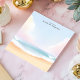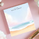 Find your peace with this calming, personalized notepad. The design captures a serene beach scene with a focus on the expansive sky and soft, pastel clouds above gentle ocean waves and sand. The overall effect is tranquil and atmospheric. Customize this notepad with your own text for a unique touch. Perfect for journaling, reflections, or everyday notes.