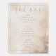 This elegant wedding menu features a minimalist design with a soft, watercolor background in muted earth tones of beige and light brown. The layout is clean and balanced, with text organized into three sections labeled "THE BAR," "BEER," "WINE," and "SPIRITS" using a sophisticated serif font that adds a touch of formality. The overall style is modern yet classic, creating a serene and inviting atmosphere perfect for a refined event. The focus on typography and subtle color palette enhances readability while maintaining an understated sophistication ideal for weddings or upscale gatherings.