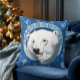 Serene Blue Art Nouveau Polar Bear Snowflakes Throw Pillow