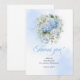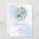 Boho wedding thank you card with blue hydrangea watercolor flowers and eucalyptus greenery, professionally printed by Zazzle on premium cardstock with crisp detail, rich color, and a smooth elegant finish.