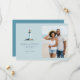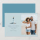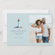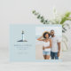 This wedding save the date features a split design with a serene lighthouse illustration on one side and a beach photo placeholder on the other, creating a balanced and harmonious layout. The color palette of soft blues, whites, and grays evokes a calm and elegant mood, perfect for a coastal-themed celebration. Clean, modern typography is centered throughout, enhancing readability and adding to the sophisticated aesthetic. Customizable elements allow for personalization, making it ideal for couples planning their special day in Naples, Florida.