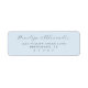 These return address labels feature a minimalist and elegant design with a light blue background, creating a serene and sophisticated look. The layout includes cursive script for names paired with clean, serif block text for addresses, offering a blend of casual elegance and formality. Customizable fields allow personalization, making them perfect for adding a touch of intimacy to your mailings. The soft color palette and ample negative space enhance readability while maintaining a polished aesthetic ideal for any occasion.