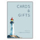 This wedding tabletop sign features a serene lighthouse illustration on a rocky outcrop, set against a calming light blue background. The design uses a minimalist style with clean lines and a soothing color palette of soft blues, crisp whites, vibrant reds, and warm yellows. The typography is modern and clear, enhancing the overall inviting mood. Perfect for expressing gratitude at your celebration, this sign combines tranquility and appreciation in an elegant, dreamy aesthetic.