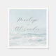 This wedding napkin features a serene ocean scene with gentle waves and a soft blue and white color palette, creating a calming atmosphere. The design includes elegant script typography for the names, paired with a minimalist sans-serif font for additional text, all centered to maintain balance. The realistic depiction of the seascape enhances the tranquil mood, making it perfect for celebrating significant life events. Ideal for weddings, this napkin combines nature's beauty with sophisticated style, offering an inviting and memorable touch to your special day.