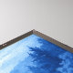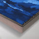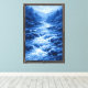 A tranquil monochromatic blue landscape featuring a flowing river cascading gently over smooth rocks, surrounded by misty trees and distant mountains. The soft painterly brushstrokes and cool tonal harmony create a calming, meditative atmosphere. This artwork blends impressionistic texture with peaceful wilderness scenery, making it perfect for minimalist interiors, nature-inspired decor, and serene bedroom or office spaces.